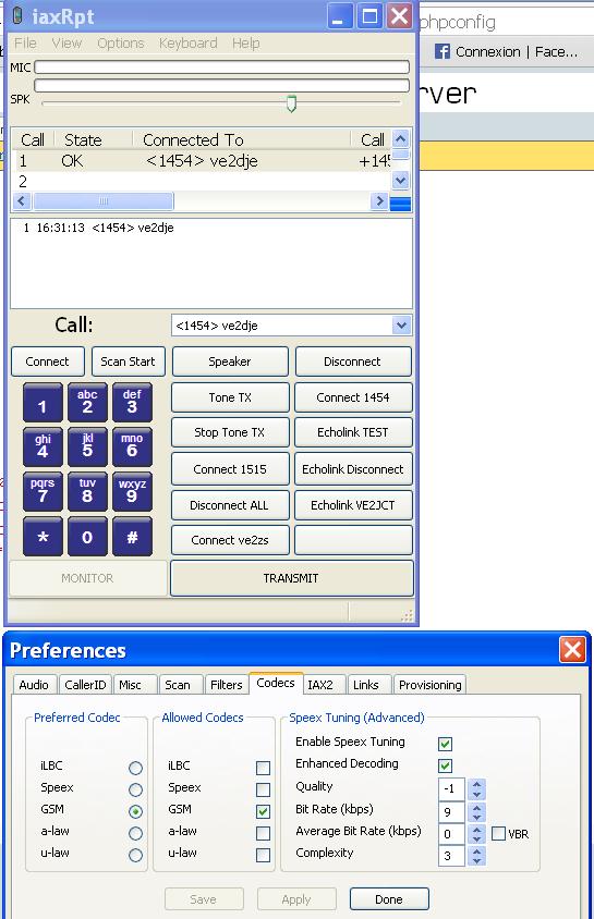 Dans iaxrpt , sélectionnerle codec GSM comme suit